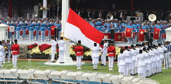 - Pengibaran bendera pusaka merah putih diiringi lagu Indonesia Raya