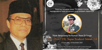 Kabar duka datang dari salah satu negarawan. Letjen Purn TB Silalahi dikabarkan telah meninggal dunia pada Senin (13/11/2023). Mengenai kabar ini, pihak Yayasan TB Silalahi Center sudah mengonfirmasi kebenarannya. Almarhum diketahui tutup usia di RS Medistra, Jakarta Selatan, tepatnya di umur 85 tahun. Jenazah disemayamkan di di Hall of Silence di TB Silalahi Center, Balige, Sumatra Utara pada Kamis, 16 November 2023.