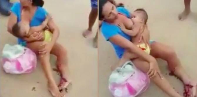 Sang ibu tetap menyusui meski terluka parah hingga kakinya patah. Peristiwa mengharukan ini tertangkap dalam video yang sejak itu viral di media sosial.