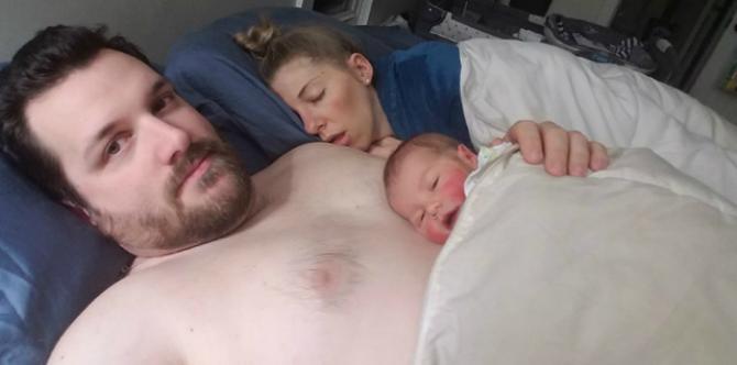 Seorang suami sekaligus ayah yang tak diketahui dengan pasti identitasnya memosting foto ini. Di dalam foto tersebut, terlihat bahwa sang istri tengah tertidur lelap dan ia melakukan skin to skin untuk bayinya.