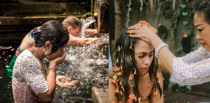 Setelah itu, ritual dilanjutkan dengan membasuh diri di mata air untuk membersihkan diri dan pikiran. Usai membasuh diri dengan air, wisatawan diperbolehkan untuk membilas dan berganti pakaian. Terakhir, wisatawan bisa melakukan sembahyang dan dipercikkan air suci oleh petugas setempat.