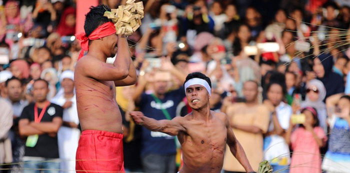 Lalu, para pemain akan menjalani ritual dan iringan doa dari para tetua adat terlebih dahulu. Setiap giliran pukulan sapu ini, para peserta akan mengangkat tangan setinggi-tingginya, seolah mereka pasrah untuk dipukuli.