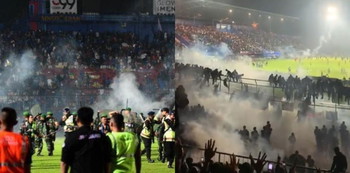 Untuk menghalau serangan para suporter ini, polisi lalu menembakkan gas air mata. Tetapi sayang, kondisi justru semakin tidak kondusif. Para suporter yang panik langsung berdesakan mencoba keluar dari stadion tersebut.
