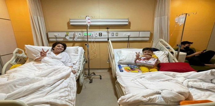 Potret Tya Ariestya Dirawat Bersama Anak Pertama karena Terkena DBD