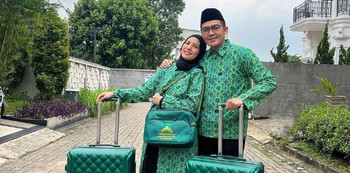 Sementara itu, Tya mengenakan gamis yang dipadukan dengan blazer batik dengan motif senada dengan Irfan. Mereka pun akan segera melakukan perjalanan menuju Jeddah, Arab Saudi.