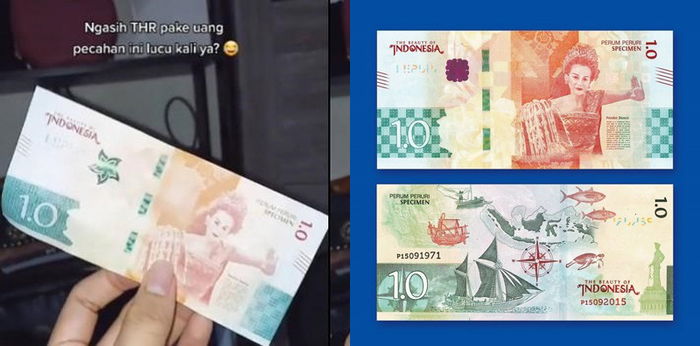 Video tersebut memperlihatkan selembar kertas dengan nominal yang terbilang unik, yakni 1.0 (satu koma nol) bergambar seorang perempuan yang tengah menarikan tarian tradisional Tari Pendet. Sementara di baliknya ada gambar berbeda, yakni peta negara Indonesia dan gambar kapal layar. Uang tersebut berwarna merah dan hijau lengkap dengan hologram khas uang rupiah.