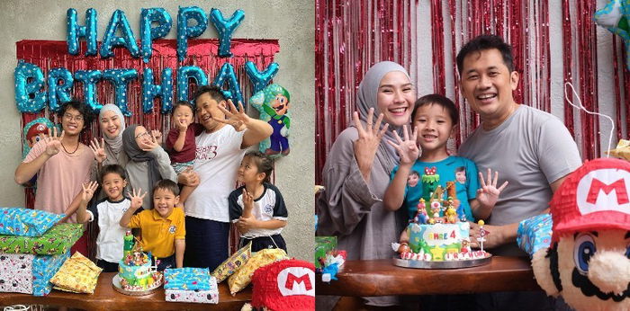 Raut wajah keceriaan terpancar dari keluarga Hanung Bramantyo dan Zaskia Adya Mecca. Acara ulang tahun yang sederhana itu lengkap dengan dekorasi minimalis, kado, dan kue ulang tahun.