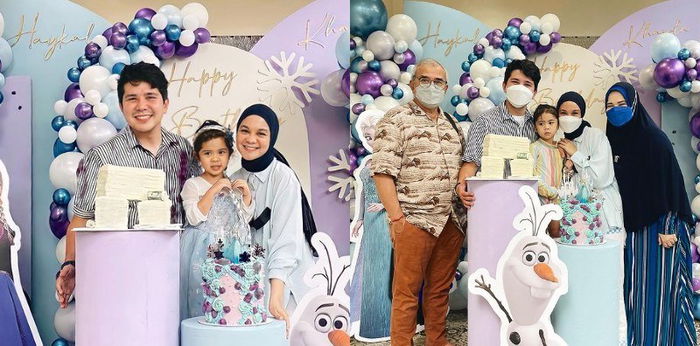 Meski Haykal Kamil juga turut berulang tahun, dekorasi perayaan ulang tahun mereka justru lebih dominan untuk anak-anak. Kue dan beberapa item dekorasi yang disuguhkan bertema Frozen dengan dominasi warna biru.