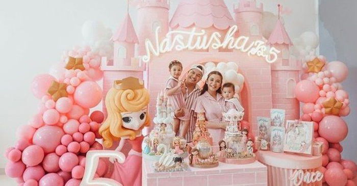 Tak berbeda dengan ibunya, hal-hal yang berkaitan dengan fairytale tampaknya juga disukai oleh Nastusha. Dalam perayaan ulang tahun Nastusha yang kelima, tema yang diusung pun tak jauh dari fairytale. Dekorasi berupa istana megah pun tampak cantik dengan karakter seorang putri dan balon di beberapa sisinya. Bentuk kue yang dipilih pun menyerupai istana megah.