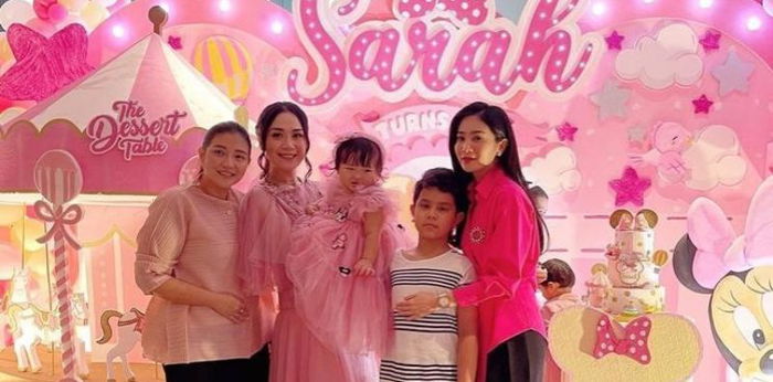Mereka juga kompak dalam hal berpakaian yaitu menggunakan outfit yang serba berwarna pink yang memang pada saat itu menjadi dress code ulang tahun Baby Sarah.