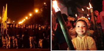 Seperti namanya, pawai obor digelar dengan membawa obor, berjalan beriringan mengelilingi lingkungan sekitar.
