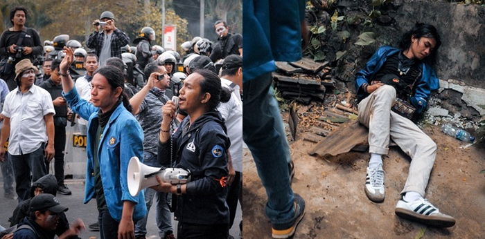 Jadinya semuanya bisa kena imbasnya mulai dari gas airmata, tembakan peluru karet, bahkan dipukuli. Kan jadinya ngeri.