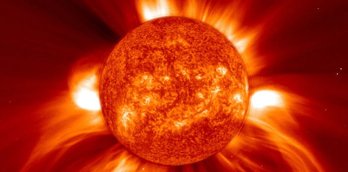 Korona adalah lapisan terluar tipis dari atmosfer matahari dan dapat meluas hingga jutaan kilometer ke luar angkasa. Gas di korona terbakar pada suhu sekitar satu juta Celcius dan bergerak dengan kecepatan sekitar 145 kilometer per detik. Beberapa partikel mencapai kecepatan lepas 400 kilometer per detik.