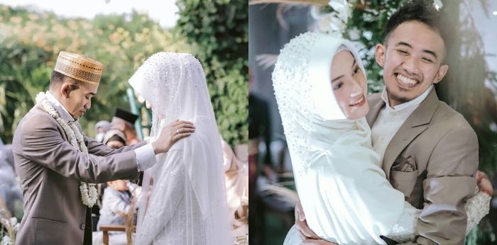 Upacara akad nikah digelar dengan mengusung tema outdoor. Lelaki bernama lengkap Syamsuddin Nur Makkah ini tampak gagah dalam setelan jas berwarna abu-abu. Sedangkan sang istri terlihat anggun memesona dalam balutan gaun muslimah berwarna putih.