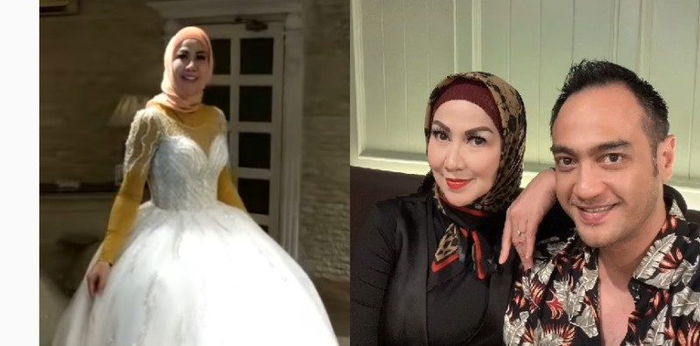 Meski sudah berusia 49 tahun, Venna Melinda masih tampak terlihat cantik dan awet muda. Apalagi busana pengantin yang dipilihnya begitu anggun dan modern.