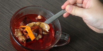 - Jika air sudah berwarna merah, angkat dan tuangkan dalam gelas. Selanjutnya wedang uwuh bisa dihidangkan dengan disaring atau tanpa disaring.