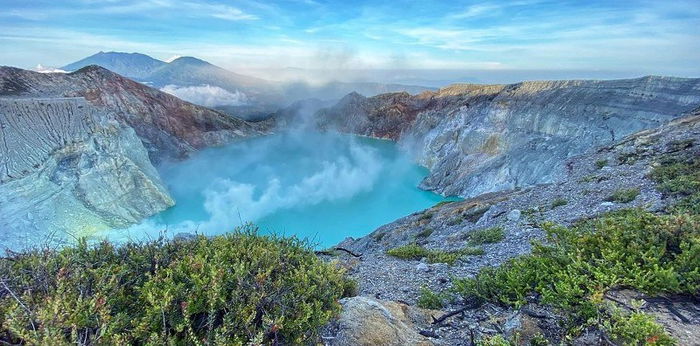 Kawah Ijen juga terlihat sangat memesona dengan warna airnya yang kebiru-biruan. Tak jarang kawah ini juga mengeluarkan asap dari belerang yang membuat keindahannya semakin memikat. Sungguh suatu pengalaman yang sayang untuk dilewatkan!
