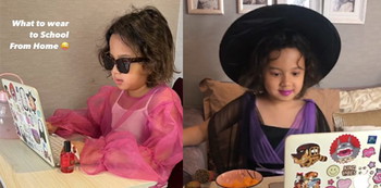 Zoe memang anak yang spesial. Keistimewaan sosoknya pun terlihat dari pemilihan kostumnya ketika menghadiri kelas online.